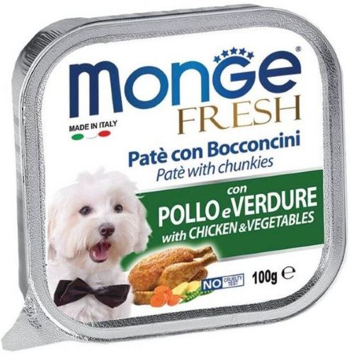 Visavertis konservuotas šunų maistas su vištiena ir daržovėmis – gardus paštetas su šviežios vištienos gabaliukais, specialiai sukurtas visų veislių suaugusiems šunims.
